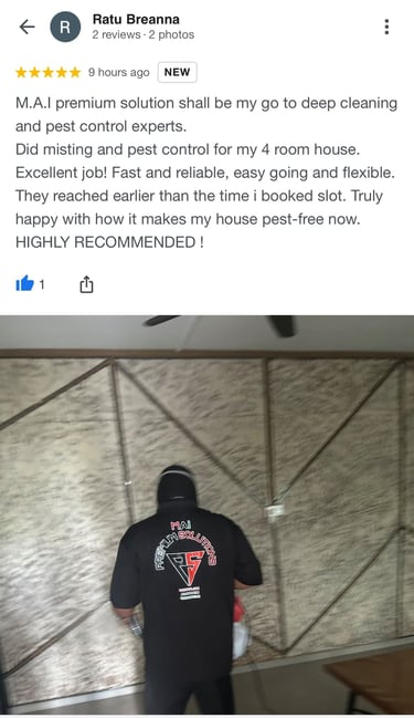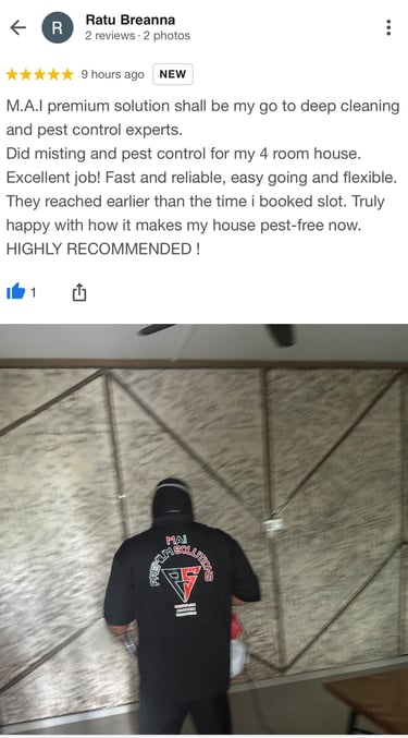 "At MAI Premium Services, we do not just perform pest-control services. We go beyond basic pest control. We identify root causes and design customised treatment plan that deliver lasting protection for your home or business."